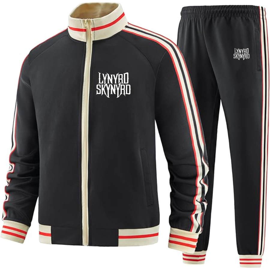 Men's Lynyrd Skynyrd Two Piece Designer Tracksuit with Bold Striped Accents and Zippered Front Elevated Athletic